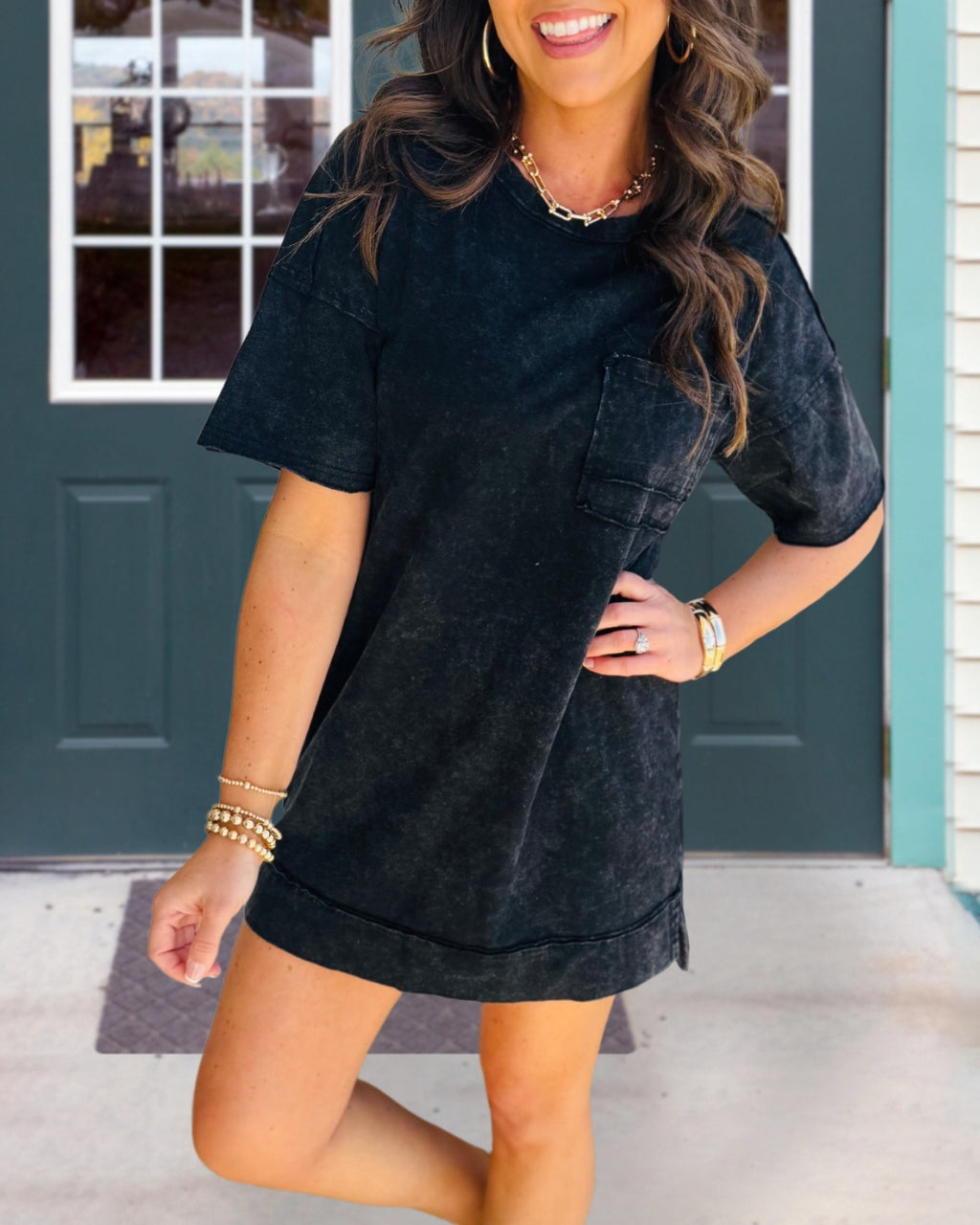 - The Washed Cotton T-Shirt Dress features a pocket design for added functionality.